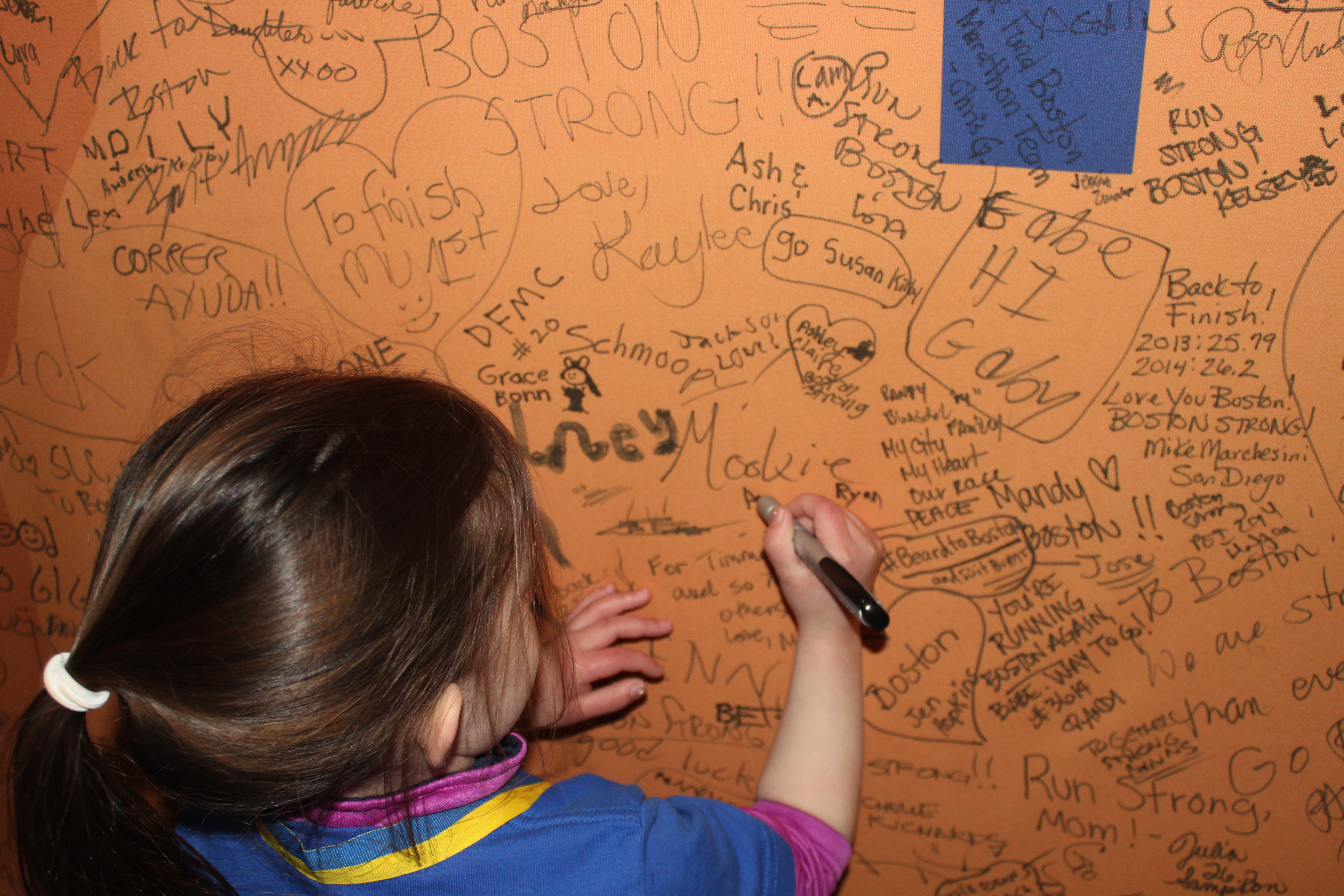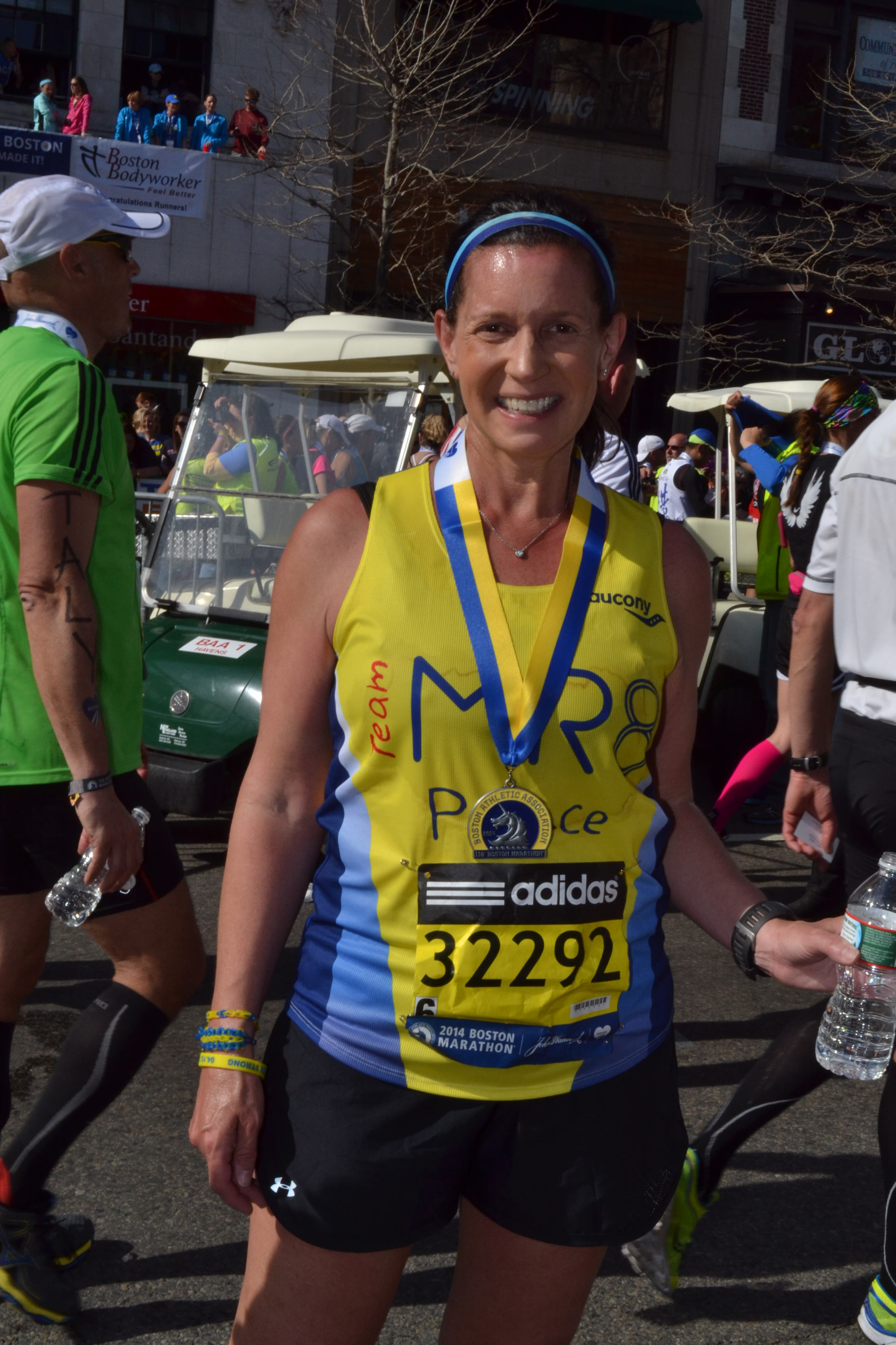 I think the only reservations I have about running is the effect it will have on my children. My son cannot watch fireworks anymore and has asked me multiple times if I am sure that there will not be a bomb at the marathon this year. He has also asked me numerous times why anyone would want to hurt people. It is hard to not be able to answer a question your child asks you – when the truth is I have the same question. We have been back to the Finish Line on Boylston Street as a family a number of times since that tragic day and I am hopeful that these most recent memories will help to fade the frightening memories they have from last April. My husband is planning to bring our children to the Finish Line this year, and I want them to be there. It is important to me that my children not associate the Boston Marathon and the Finish Line with danger, but rather as a place to celebrate the human spirit, resilience and our city.