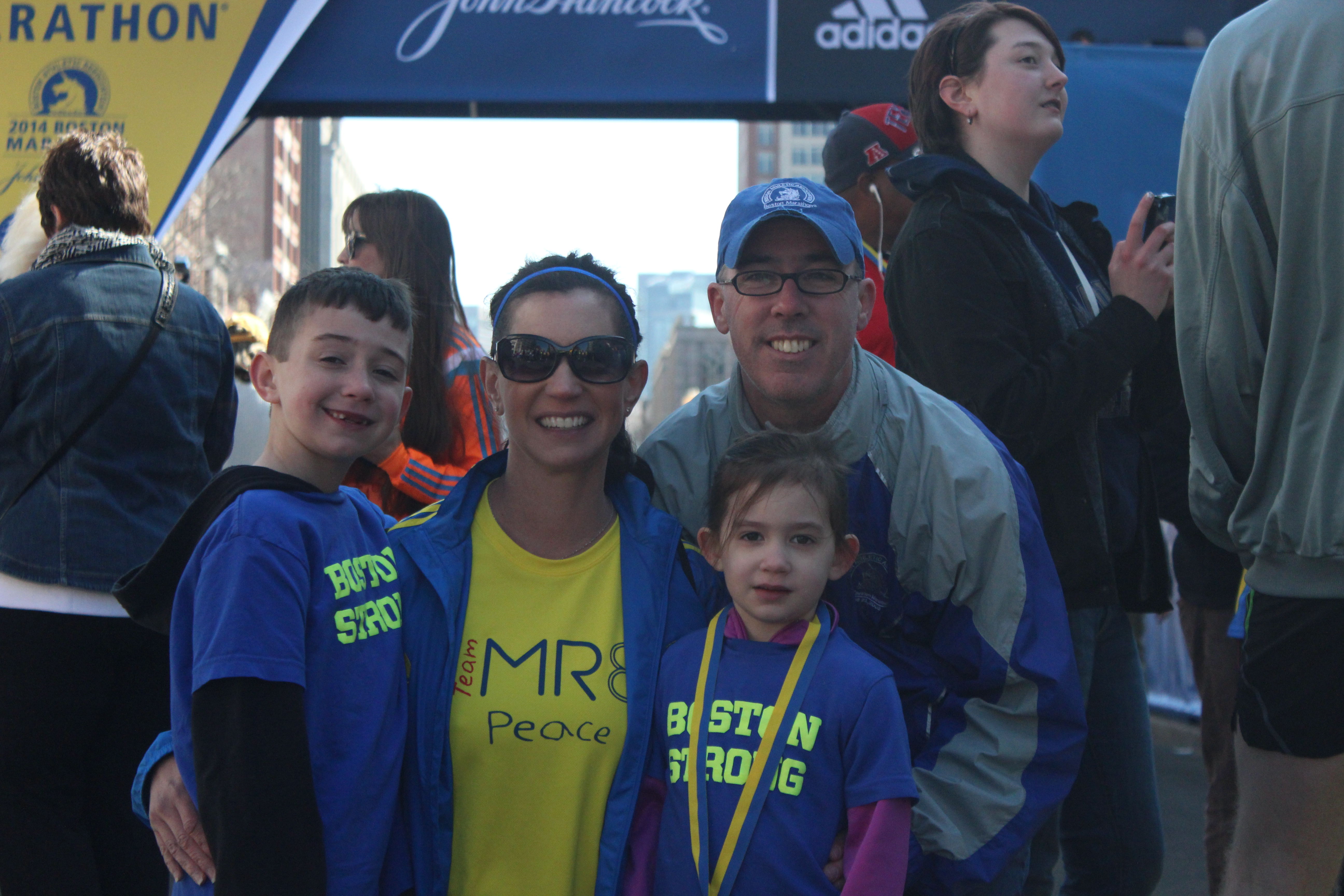 Because I was not able to finish, the BAA granted me (and all of the other 5500+ non finishers) an invitational entry to return in 2014. This invitational entry waved the qualifying time requirements along with any fundraising requirements that typically exist in order to run in the Boston Marathon. However, I felt as though I would be remiss if I used this opportunity solely to “finish what I started” last year. It was important to me to honor the victims and the survivors in some way. My family was on Boylston St. at the finish line last year waiting for me to finish the marathon. I was a half mile away from finishing at the time of the explosions. My husband and children were actually standing directly across the street from where the Richard family was standing and my parents were on a section of Boylston Street in between the two explosions. I am extremely grateful that we were all unharmed, but I have not been able to get the Richard family out of my mind since the world learned that 8-year old Martin was one of the three lives lost that day. My heart aches for the family and I have not been able to shake the ‘why their family and not my family” feeling since last April. Joining Team MR8 has given me the opportunity to do more than just “be grateful” – it has given me the opportunity to honor the memory of an 8 year old boy who I never knew, and his wish for peace.