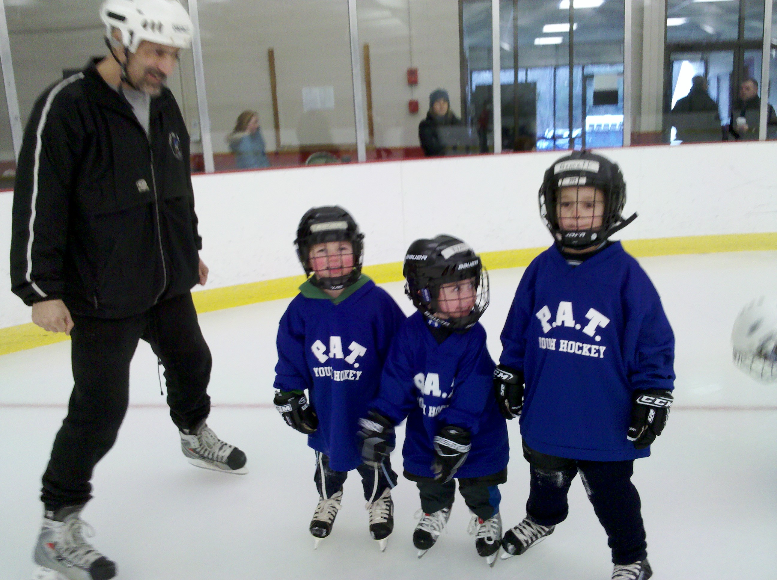 Our journey began at The Groton School with P.A.T. Hockey. Ryan is handed a hockey jersey that is much, much too large for him (wait – why does he have to wear a hockey jersey? This isn’t hockey, it is ‘learn to skate’!). The trap has been set.